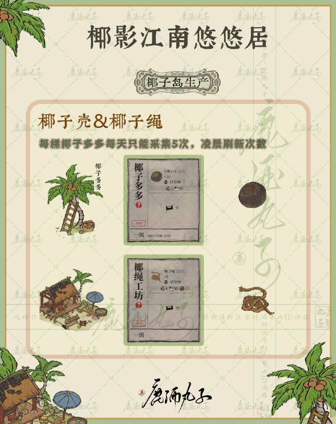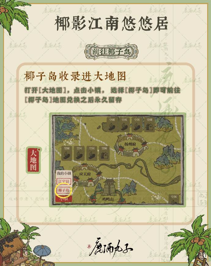 1.江南百景图椰子岛需要地图碎片20个,地图碎片获得方式是客栈提交订单,画室、绣坊生产随机掉落。