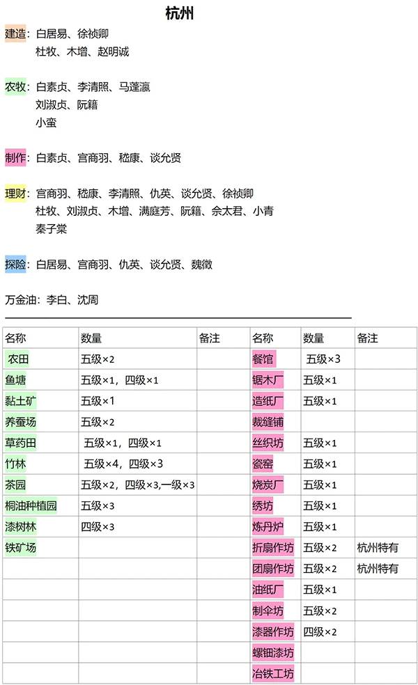 主要生产玉器、香粉、经书、年历,其他的是为了满足任务需求。扬州跟杭州一样都是偏向赚钱,不怎么用来生产。