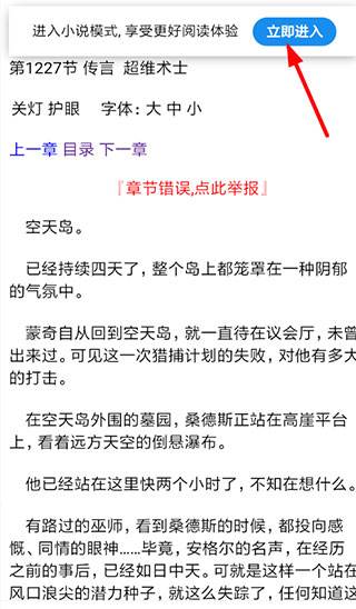 接下来在进入了小说的阅读页面后,大家就可以通过上方的“立即进入”按钮,直接点击进入小说模式了;