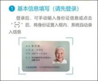 ①基本信息填写(请先登录)登录后,可手动输入身份证信息或点击“C后,将身份证置入框内,系统自动录入信息