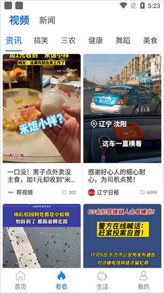 3、当点击看看模块时,用户还可查看各种资讯短视频;