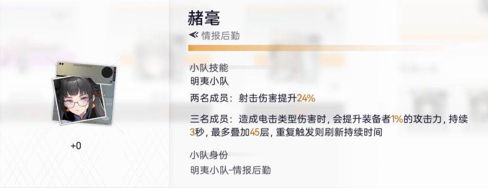 特长:攻击力提升— 暴击伤害增加— 电击伤害提升