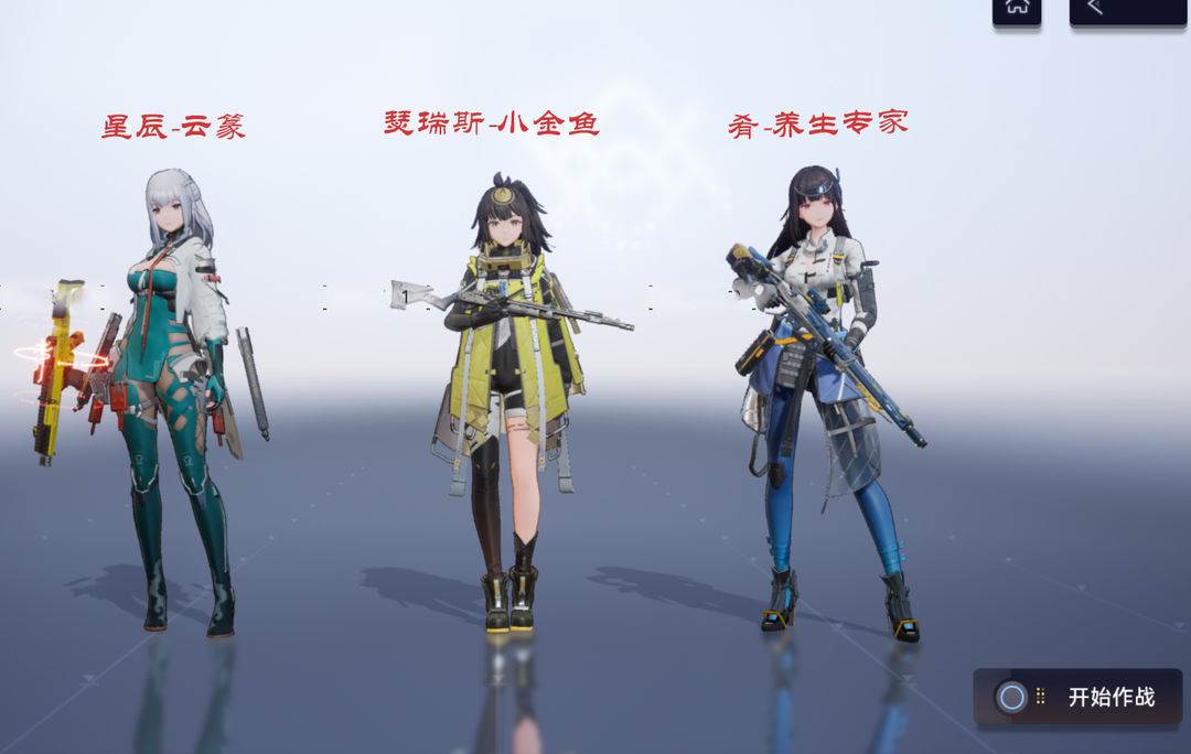 一队:根据第一个五星来决定配队。狂猎、咎冠为近身队。雨燕、冬至为狙击队。