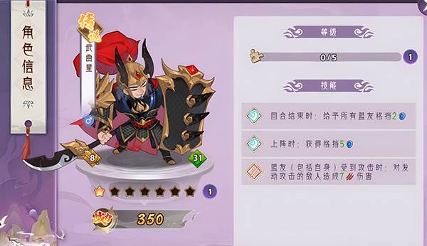 武曲星:超高血量成长,拥有超高的格挡值,并且每回合赋予盟友格挡,并且能够为盟友反伤攻击单位。