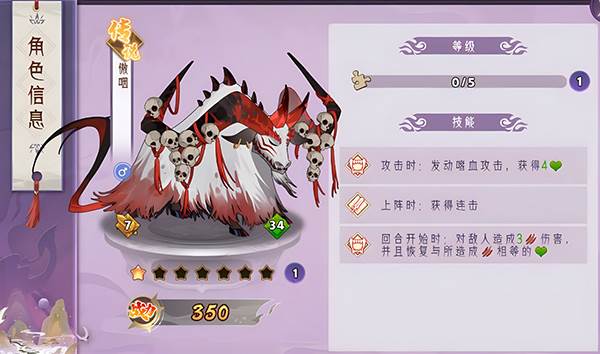 睚眦:超高血量成长,每回合获得反伤,攻击可对所有近战造成额外伤害。