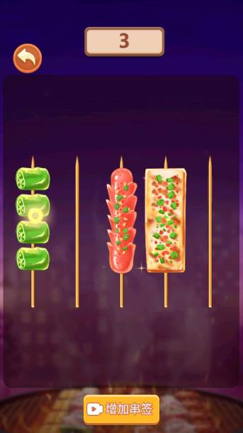 3、将同一种食物都串到一根木签上就是成功