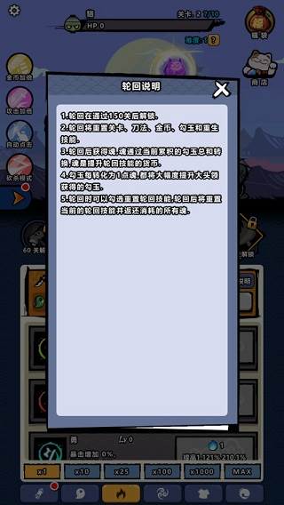 先说重生,75关后开启,每次都会保留勾玉和宠物和怪物图鉴,让你变得更强。说白了层数越高勾玉越多,你的各种数值都会提升。