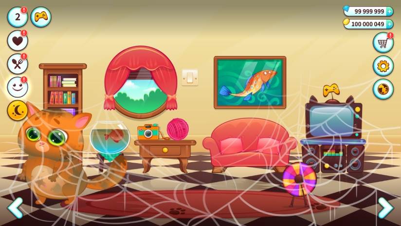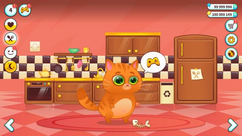 3、有30多个有趣的小游戏可以为你提供食物和金币,你可以用这些金币为你的虚拟宠物猫买东西。Catcher, Cat Connect, Find the Cat, 2048, Paint the Cat, Jump, Pop Balloons, Cheese Builder, Fish Ninja, Cat Sings, Nightmare, Jumping Cat, Diver, Stick Ninja, 等。