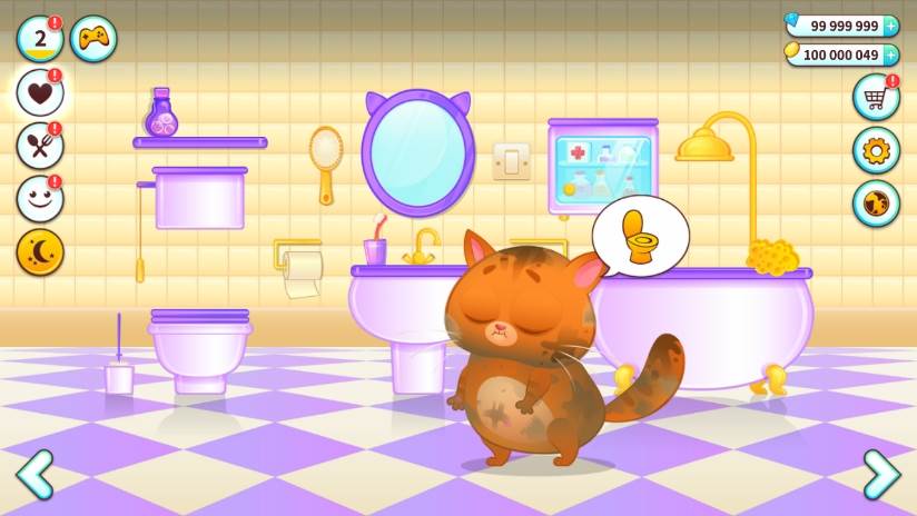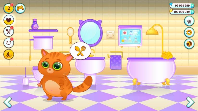 1、Bubbu正等着你去喂养、打扮、拥抱和洗澡。这只可爱的小猫每天都需要你的爱和关心,所以要好好照顾他,从早晨到午夜。总之,要确保你的小猫总是开心,总是面带笑容,并且永远不会饿着、乏困、生病和无聊。