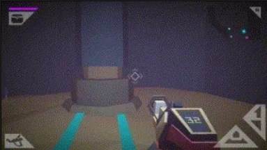 1、游戏视角是第一人称FPS类型,UI界面较为简洁,操作也不复杂,玩家控制方向键移动,滑动屏幕控制视角,屏幕上的两个按钮用来射击和跳跃,虽然实际操作起来按钮会显得有点拥挤,但是设置里可以调节按钮位置,调整成自己习惯的位置。不过部分界面的返回按钮较小,开始玩的时候不容易发现,经常造成误操作。