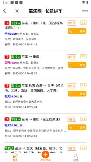 3、就会看到一系列拼车的信息,根据自己的需求来选择拼哪辆车。