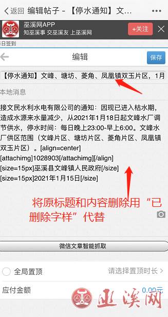 第二步:将原文标题和内容删除,用其他内容代替