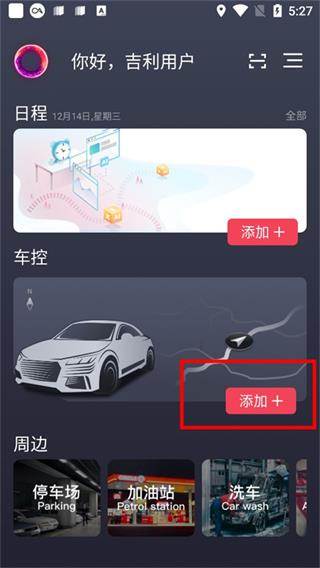 1、进入GKUI APP的首页,点击“添加车控”;