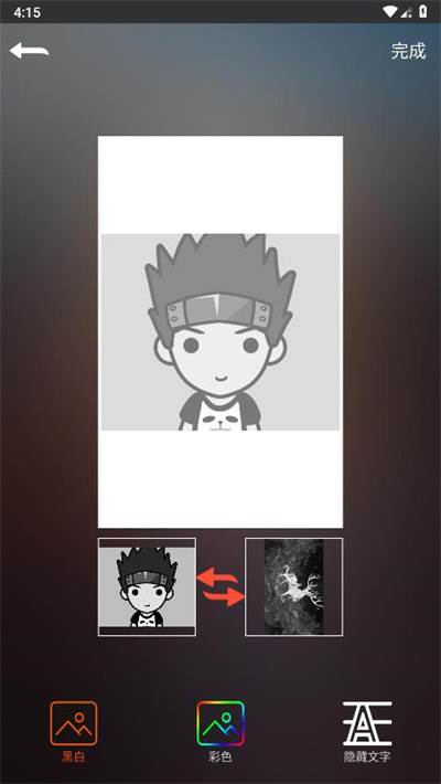 2.点击下方的【黑白】功能,然后你可以选择外部显示的照片以及隐藏的照片。
