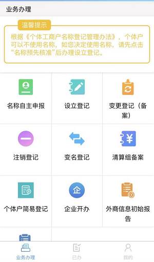 步骤三:点击“企业开办一窗通”应用,初次使用需注册/登录,通过身份证号和人脸识别后,即可访问应用