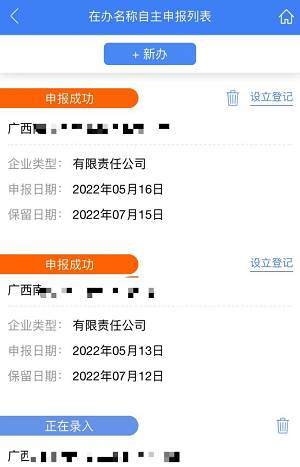 步骤四:进入应用,名称自主申报——进入【名称自主申报】,点击上方【新办】按钮