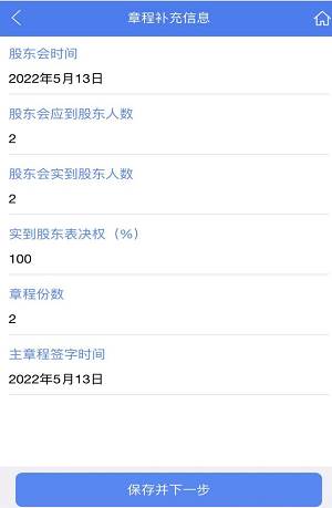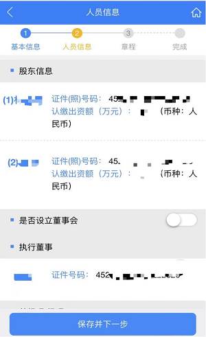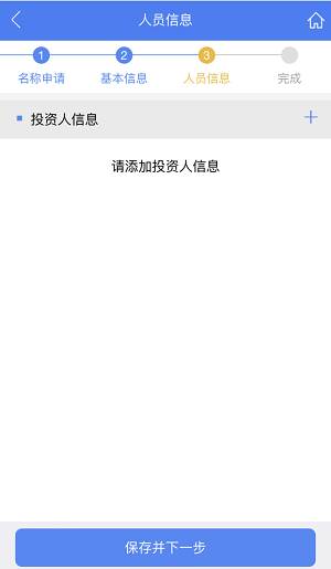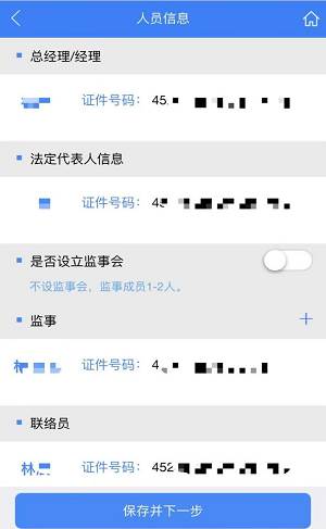 步骤十一:人员信息——补充股东信息,填写其他人员信息,,填完后点击【保存并下一步】