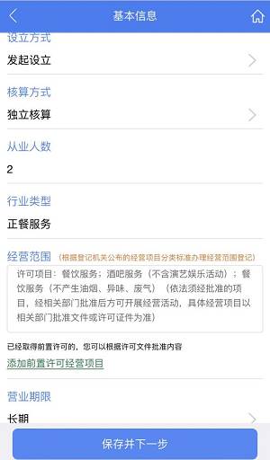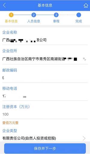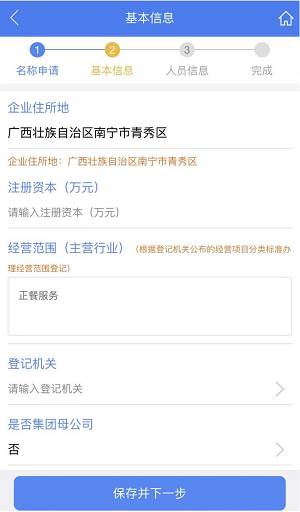 步骤十:基本信息——填写设立基本信息,填完后点击【保存并下一步】
