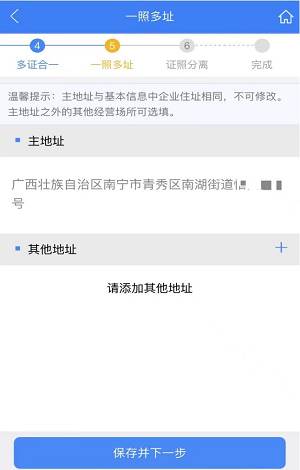 步骤十四:填写一照多址信息,如果没有,可直接点击【保存并下一步】