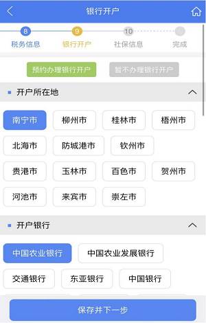 步骤十八:选填银行开户信息,可自行勾选是否办理银行开户