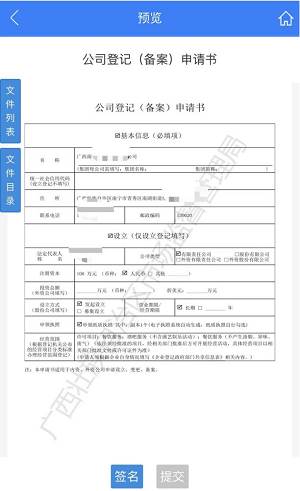 步骤二十三:检查所有填写信息,确认无误后点击【预览并提交】,进入签名界面