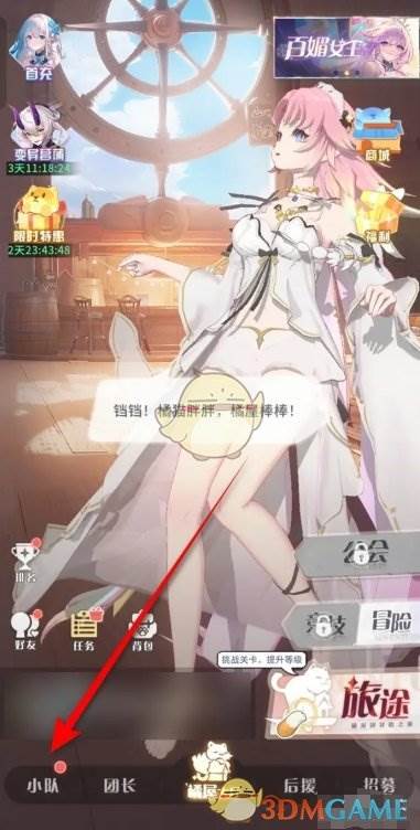 1、首先我们在游戏主页内,点击左下角的小队玩法前往;