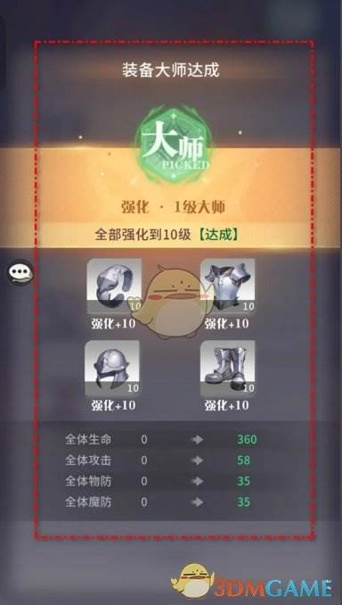 答:前往装备页面,点击一键强化,消耗金币即可完成强化