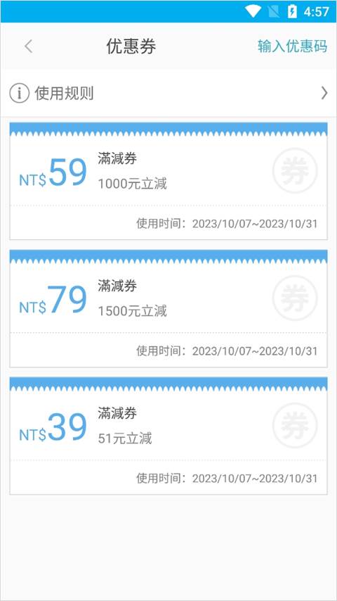 满减券:必须达到订单满足要求的商品金额(不含税费和运费)时才能使用。