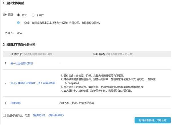 1、选择自己的主体类型,并点击同意服务协议